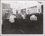 DescriptionPhotograph of the Red Cap Shoe Store, the first Black-owned shoe store in Santa Ana, run by Mr. Thomas Bell, c. 1920. The man standing in front of the counter was the shoe repairman. Through the doorway in the back was a Mexican-owned barber shop. According to the donor, this business was located on 4th street in Santa Ana but has not yet been located in any city directories.On View